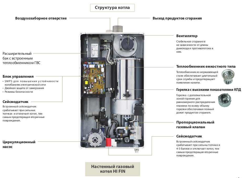 Комплектность поставки: газовый котёл в сборе; выносной комнатный термостат; инструкция.
