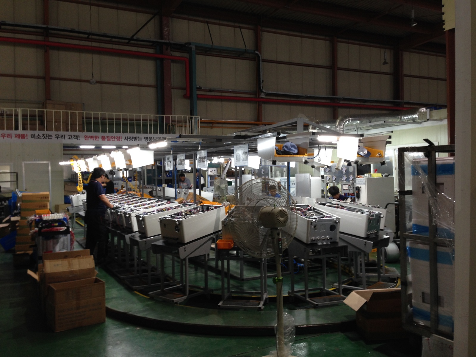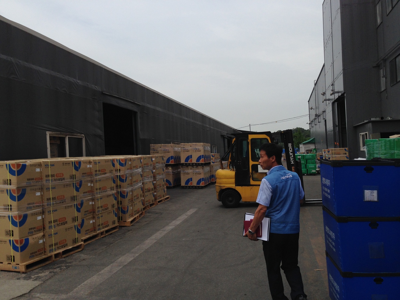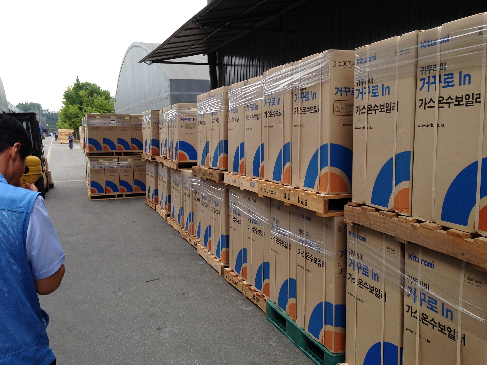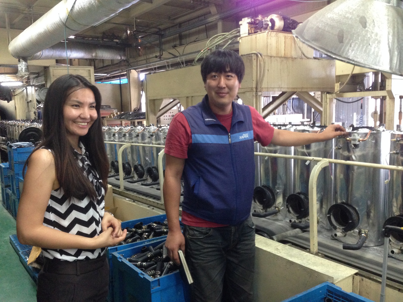 Вместе с начальником по производству г-ном Чо Тонг Хи в цеху сборки настенных котлов, складское помещение и участок подготовки к отгрузке готовой продукции.