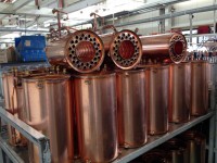 Медные (медь 99,99%) и из нержавеющей стали теплообменники напольных котлов. Конвейерная сборка газовых настенных котлов.