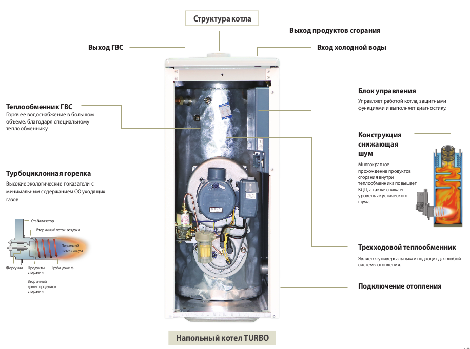 Особенности: Турбоциклонная горелка с минимальными выбросами Nox (оксиды азота).